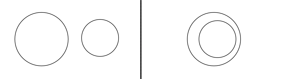- 한 원 안에 다른 원이 있는 경우 : 두 원의 반지름의 차 > 두 중심 사이의 거리