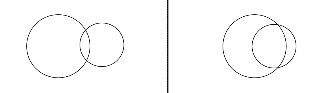 두 원이 아주 떨어져 있거나, 한 원 안에 다른 원이 들어가 있는 경우인데 나같은 경우 아주 떨어진 경우만 생각했다가 두번의 WA를 받았다.