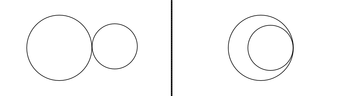 - 한 원 안에 다른 원이 있는 경우 : 두 원의 반지름의 차 < 두 중심 사이의 거리